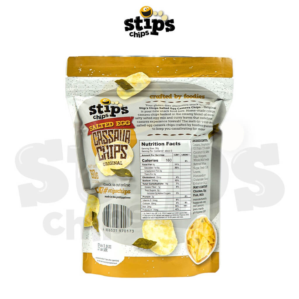 Your gluten-free alternative snack is here! Stip's Chips Salted Egg Cassava Chips - Original is your new snack food fave. Home-made crispy cassava chips basked in the creamy blend of sweet & salty salted egg mix and curry leaves that redefines your cassava experience forevah! The melt-in-you-mouth salted egg cassava chips crafted by foodies guaranteed to keep you cassalivating for more!